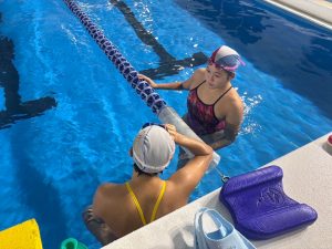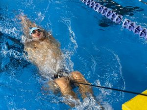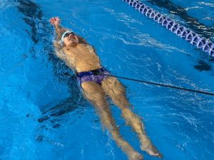 これ、なかなかきつくてチューブに負けないように、かつ軸をぶらさないように泳ぐのが難しいんです。持ち手側も意外と大変です💦
