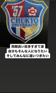 中学とは違い呼んでくれる大学があるはずも無く、コーチに行きたい大学を聞かれても答えられないまま大学進学を諦めて自衛隊にでも入ろうとしていたところ、豊山との繋がりもあり中京大学の草薙先生からぜひ中京でやってみないかと誘いを頂き、中京大学に入学することになりました。