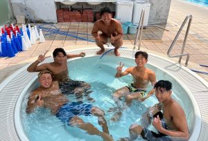 アイスバスに入ってるメンズと拓也さんです。