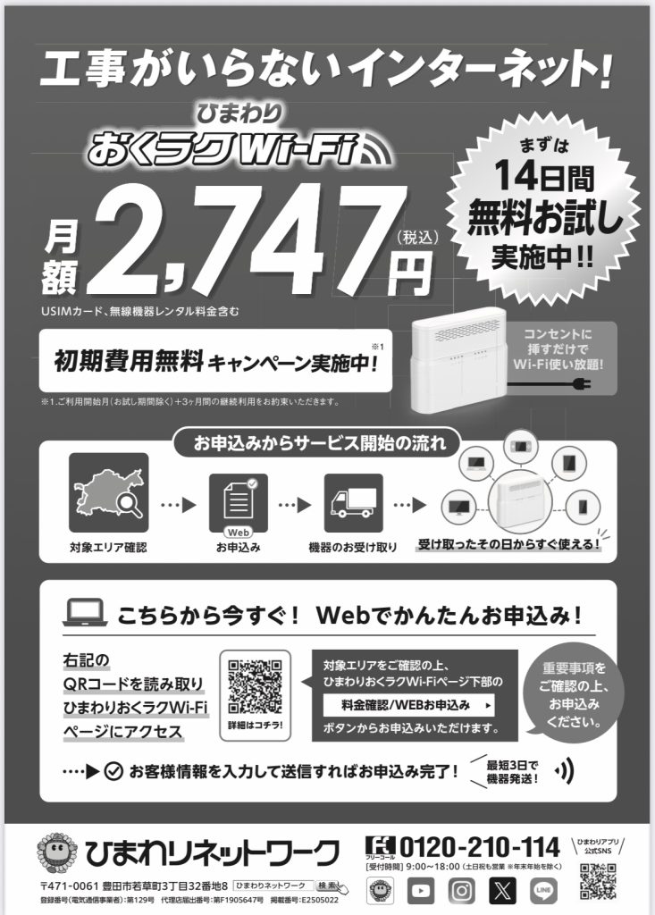 ネットと言ったらひまわり光クネット事業以外にも携帯電話事業も行っておられたりと幅広く事業を展開しておられます。ぜひさまざまなことを相談してみてください!!