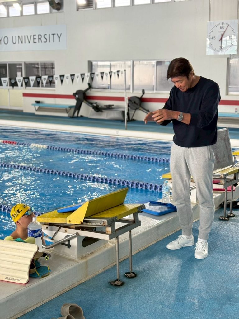 鎌田望琥人(1年)が高橋先生に泳ぎを教えてもらってるみたいです。オリンピアンに泳ぎを教えてもらえるこの中京大学という環境は本当に素晴らしいと思います。感謝です🙏