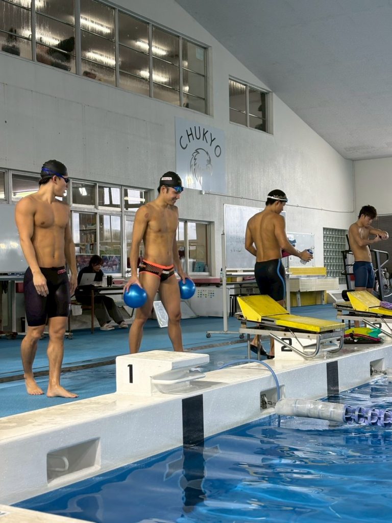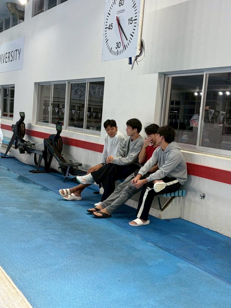 練習後に話しているのは水上チームの比嘉功太郎(1年)、土谷直樹(2年)、岡未来(2年)、東周平(2年)です!何を話しているのでしょうか