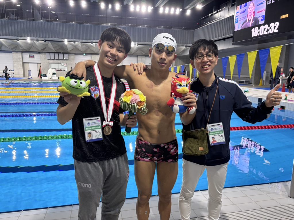 最終日では山本大地(2年)が1500m自由形で3位、神野ゆめ(OG)が50m自由形で2位、松本周也(OB)が1位を獲得しました!!