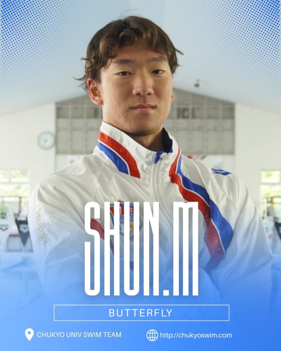 しゅんくん メンバーブログ 2026.03.31 2026.03.31(Tue) こんばんは🌙 本日の投稿を担当します 赤松奈生(3年) です。 今日の自己紹介は… 1.宮﨑瞬 2.愛知県 3.2月2日 4.バタフライ 5.万歳千唱/RADWIMPS 6.頑張る 7.No.1スイマー中京のニューオーダー みんなからの愛されキャラ“しゅんくん”です👍🏽 ラストイヤーパワーで 今年こそインカレの座を掴んでくれるでしょう🔥🔥