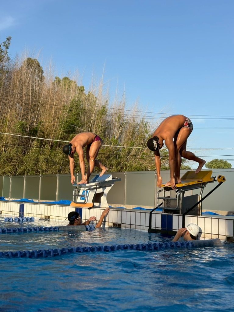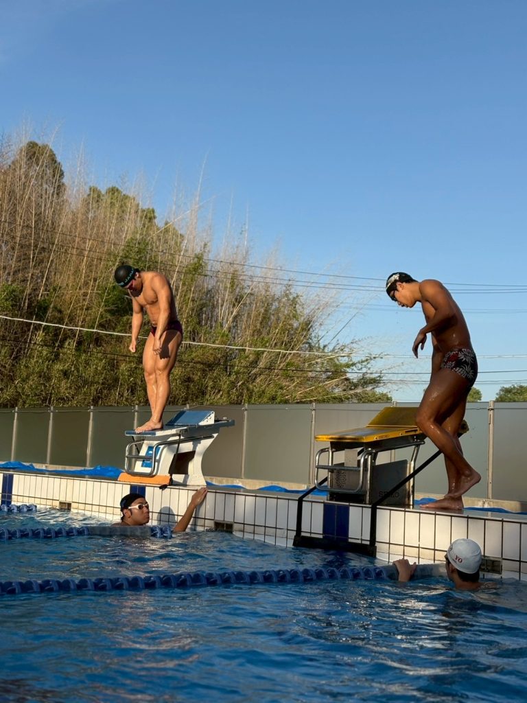 流水で泳ぎの研究をしている2人です!先輩からいっぱい学んで強くなってね💪💪💪💪💪