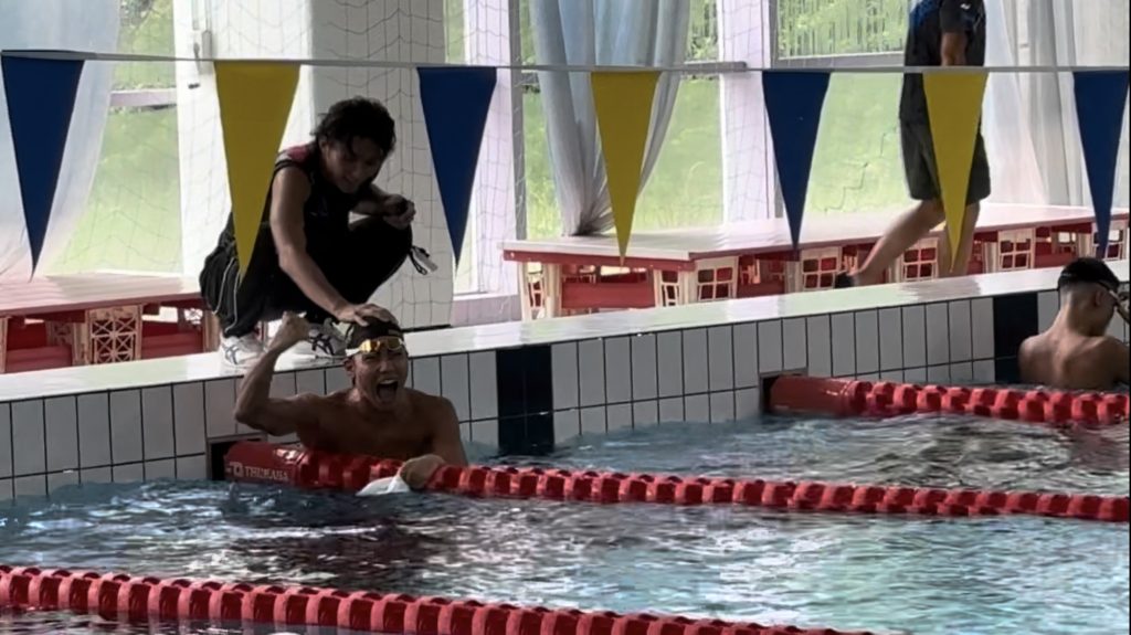 100m自由形で優勝。