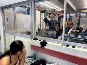 パンプアップ中の孝太郎さんとそれを見つめる百愛さんです🏋️♀️