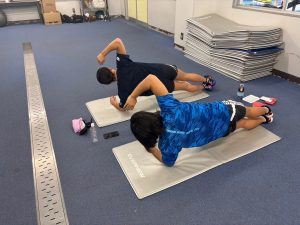 サイドプランク中の紗彩と心咲です🕴🏻
